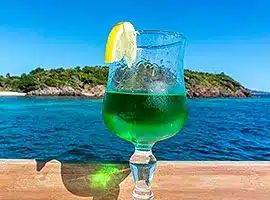 Entspannt bei einem erfrischenden Sundwoner an Deck, während ein Teil der Crew das Essen vorbereitet!