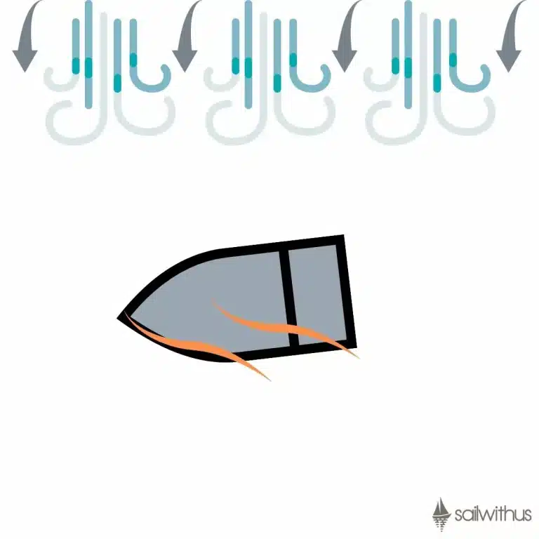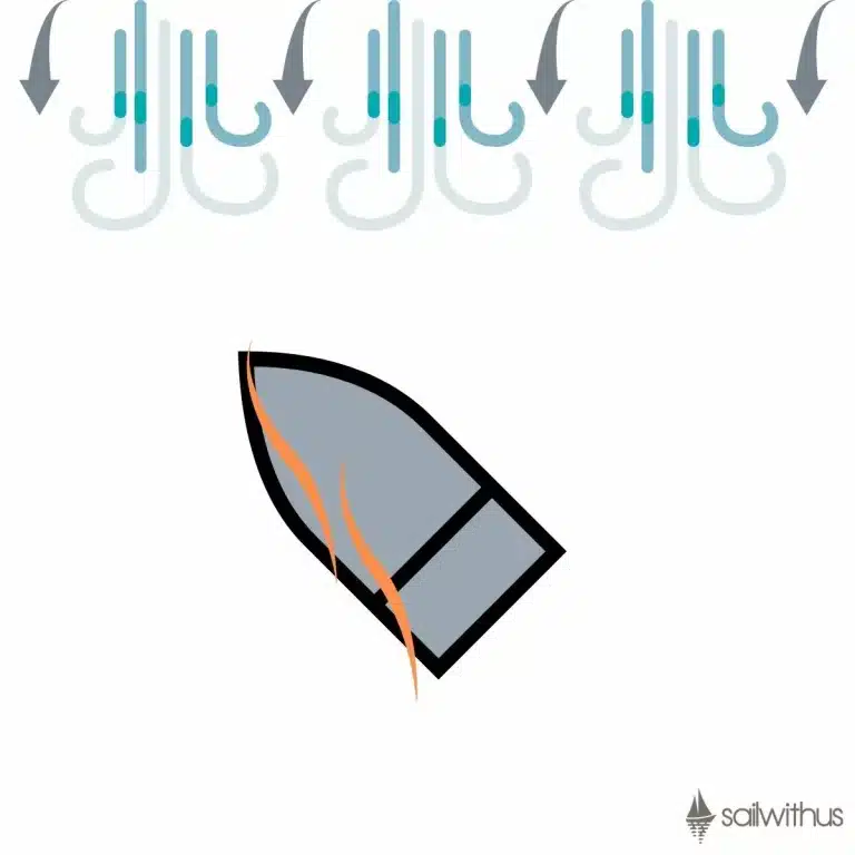 Wir können leider nicht in alle Windrichtungen segeln. Wenn wir im Wind stehen, dann ist es mit dem Segeln nämlich nicht weit her, denn im Wind können wir uns nicht voran bewegen. Der Wind fegt uns im Wind direkt von vorn ins Gesicht, unser Boot bleibt mit dem Bug im Wind stehen und die Segel flattern (in Seglersprache: "killen") uns um die Ohren. Im Wind zu stehen ist kein Kurs beim Segeln – aber für manche Manöver wichtig. Wenn beispielsweise mal etwas beim Segeln schief oder defekt geht, dann kann man sich schnell mit dem Boot in den Wind stellen und die Sache richten. Auch, wenn jemand über Bord geht oder beim Kentern ist es wichtig, dass das Boot "stehen bleibt", also mit dem Bug in den Wind zeigt.